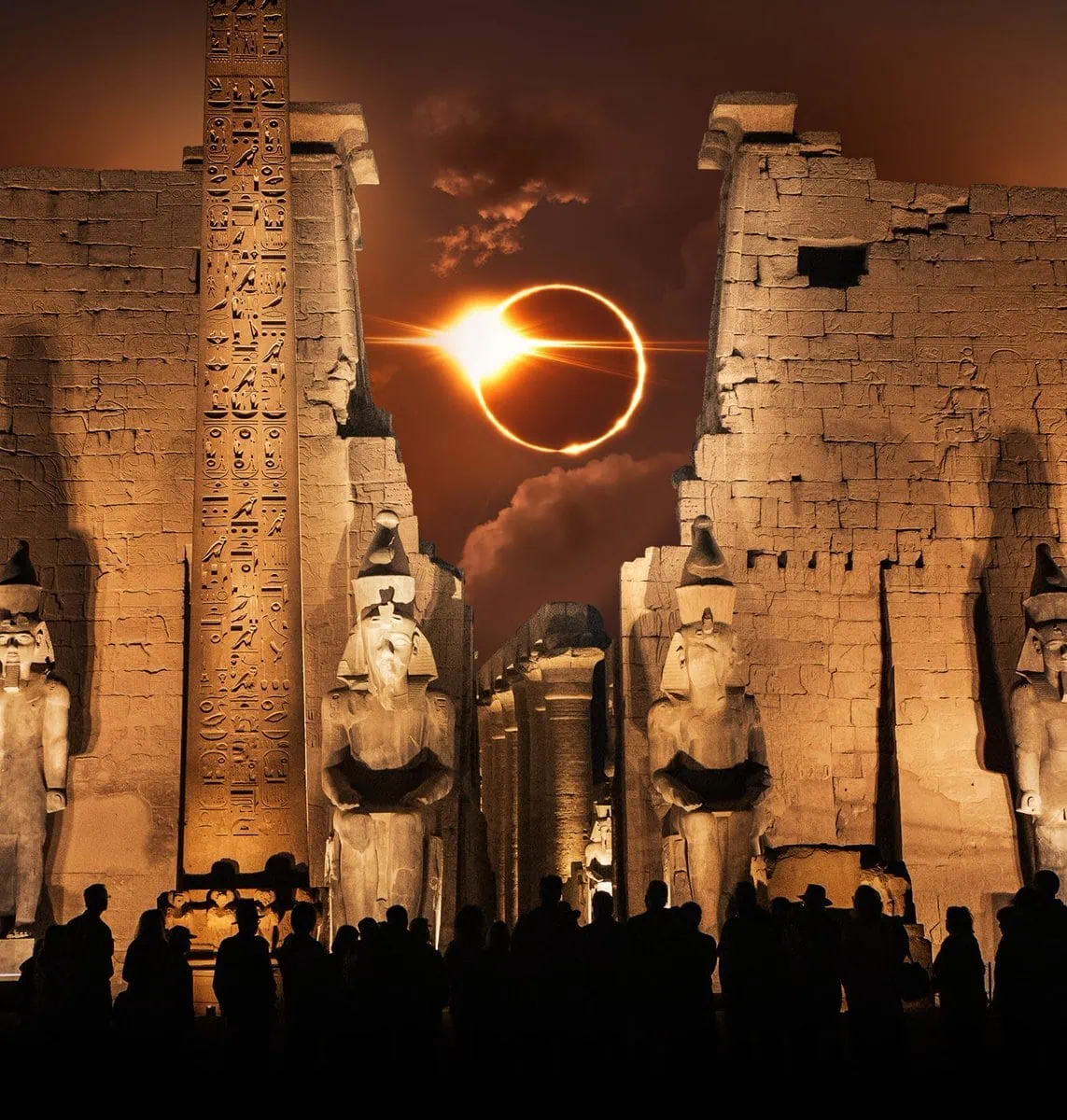 Experience the sun’s corona in full brilliance, stars appearing in midday, a 360° sunset effect, and a noticeable drop in temperature — all lasting over six unforgettable minutes in Luxor.